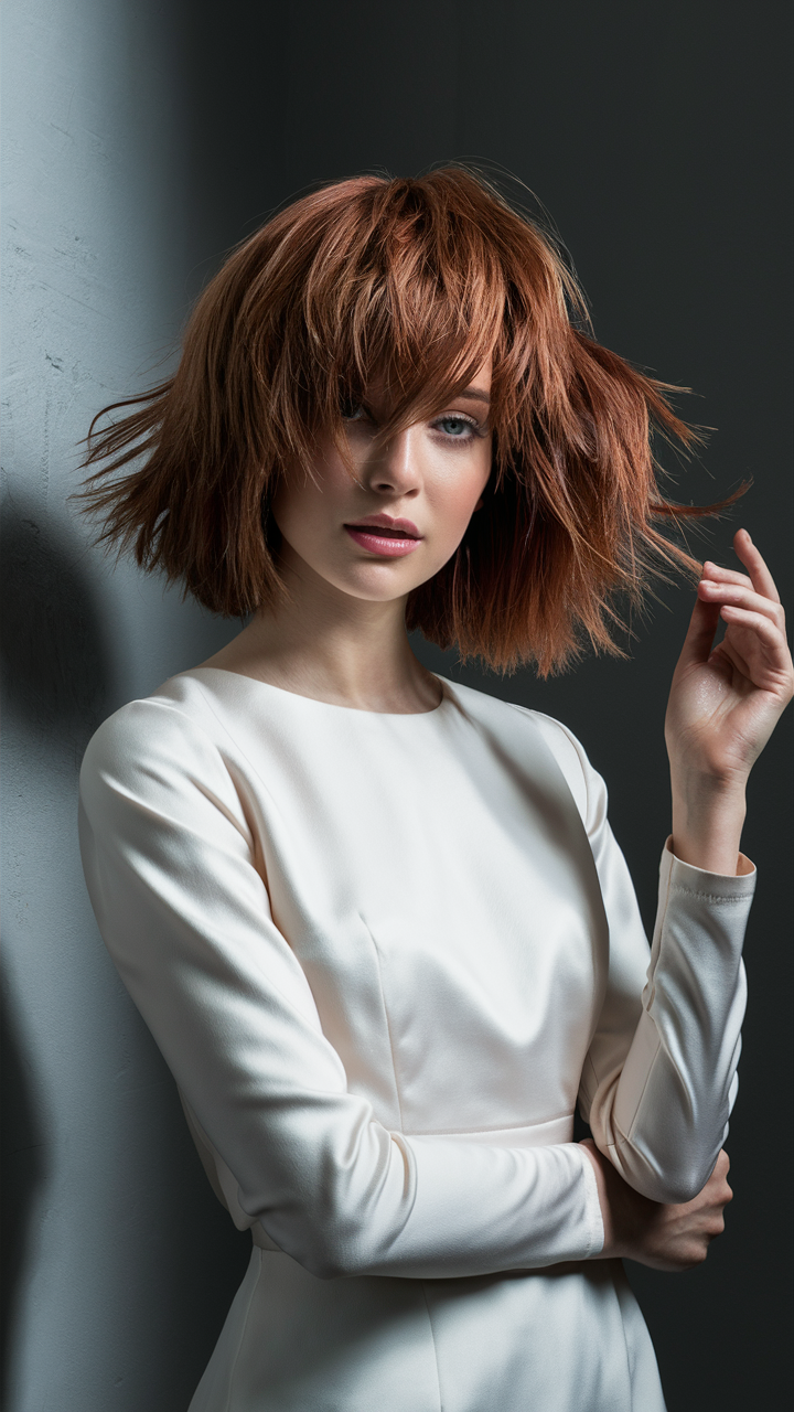 #16 Textured Auburn Bob with Choppy Layers