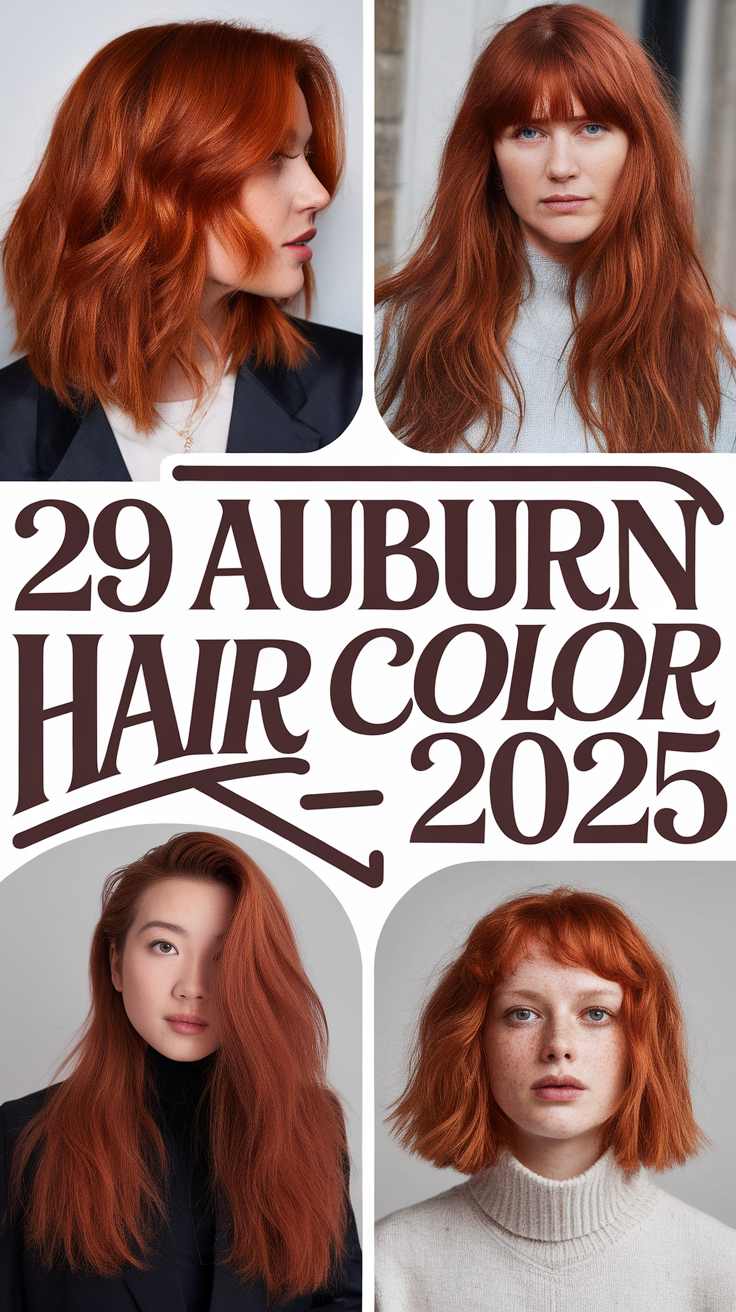 This glamorous hairstyle showcases flowing auburn waves with soft, luxurious volume. The coppery undertones add warmth, while the side-swept styling enhances the dramatic appeal. Perfect for a bold and elegant look, this style radiates sophistication and charm.