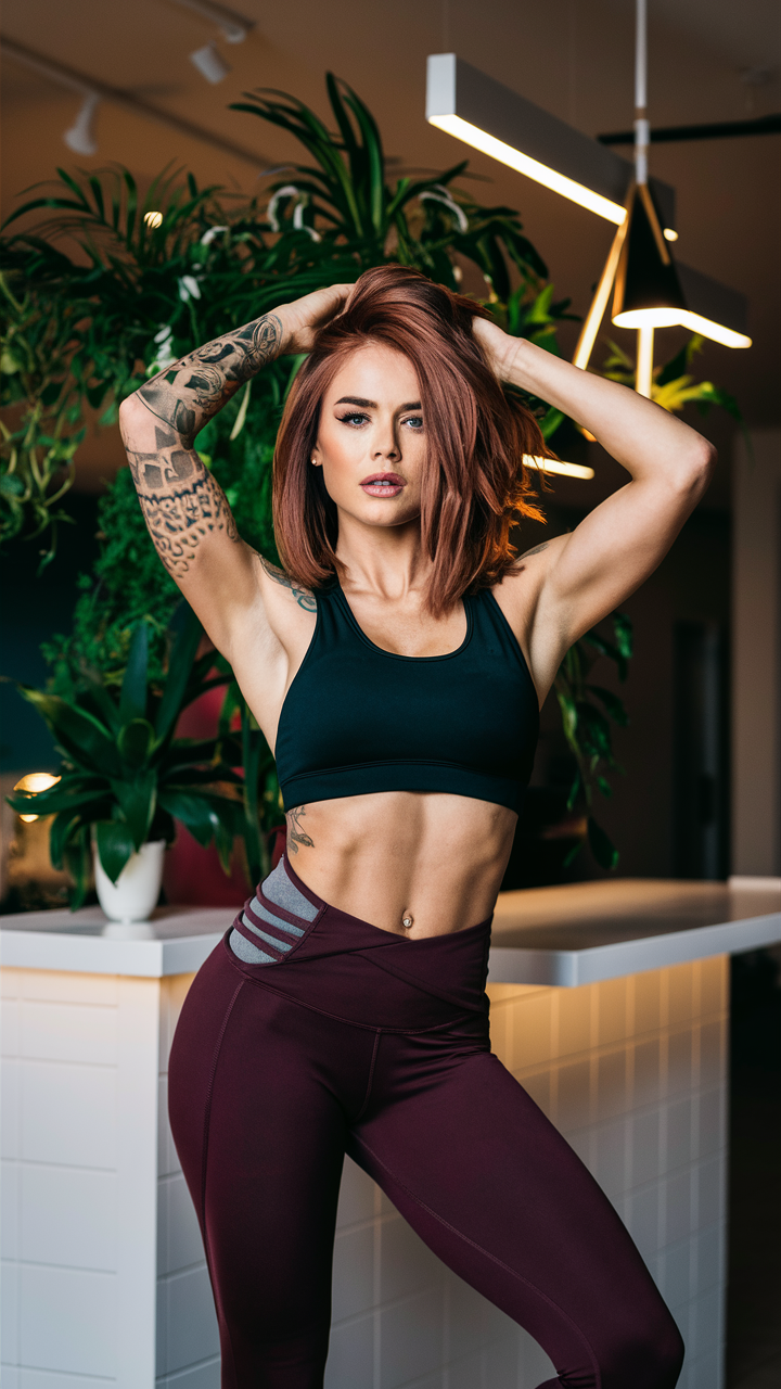 This playful bob combines vibrant copper tones with a high ponytail twist for added flair. The wispy layers and soft bangs enhance movement, giving the hair a youthful and dynamic feel. Perfect for those looking to balance boldness with versatility, this style is effortlessly trendy.