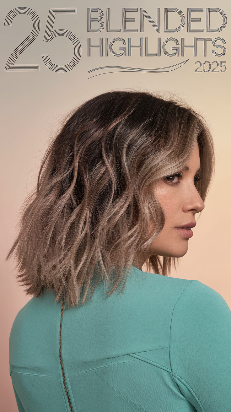 This style features dark roots that blend seamlessly into blonde highlights, creating a high-contrast, dimensional look. The chunky highlights add movement and texture, making the style pop. It’s ideal for those seeking a bold yet polished blended highlights 2025 trend.