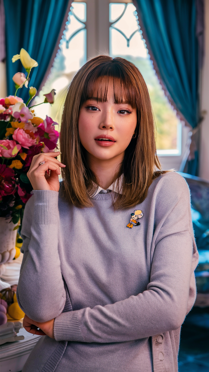 A straight, shoulder-length cut with blunt bangs for a clean and modern appearance. The blunt bangs add focus to the eyes, creating a classic and structured look. Ideal for those who prefer a bold, refined style with minimal layering.