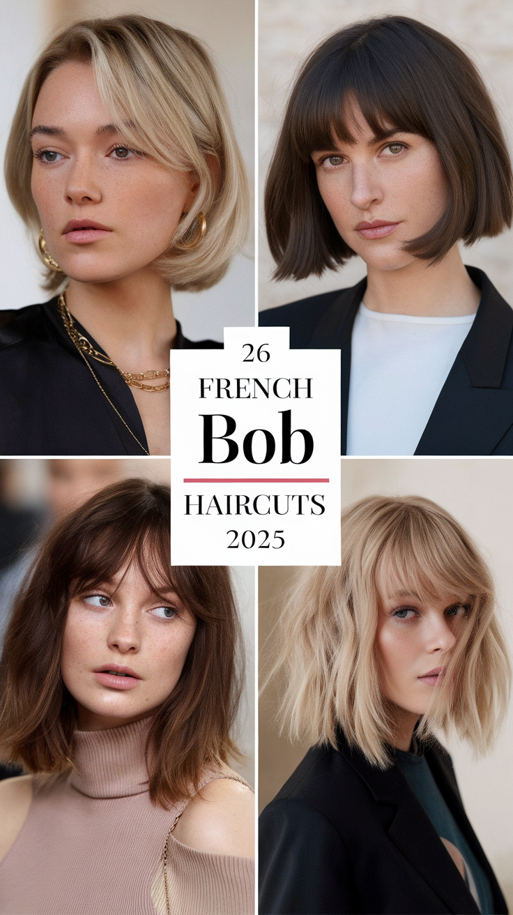 The French bob has become a timeless choice for those seeking chic and effortless style. Perfectly tailored for various face shapes, it’s a versatile haircut that enhances the natural beauty of every individual. Here, we showcase three iconic French bob haircuts of 2025, each reflecting the unique style that defines this classic trend.
