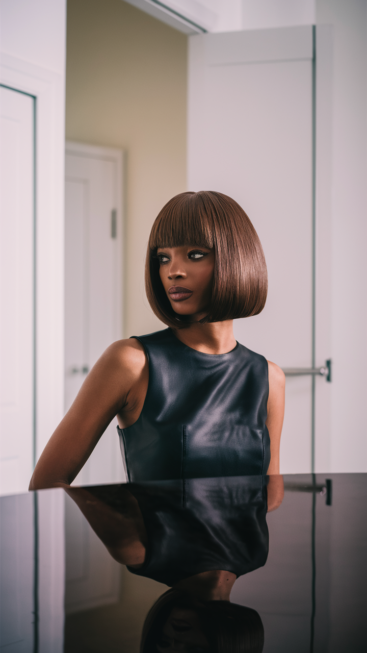 #6 Sleek Chocolate Brown Bob with Blunt Bangs