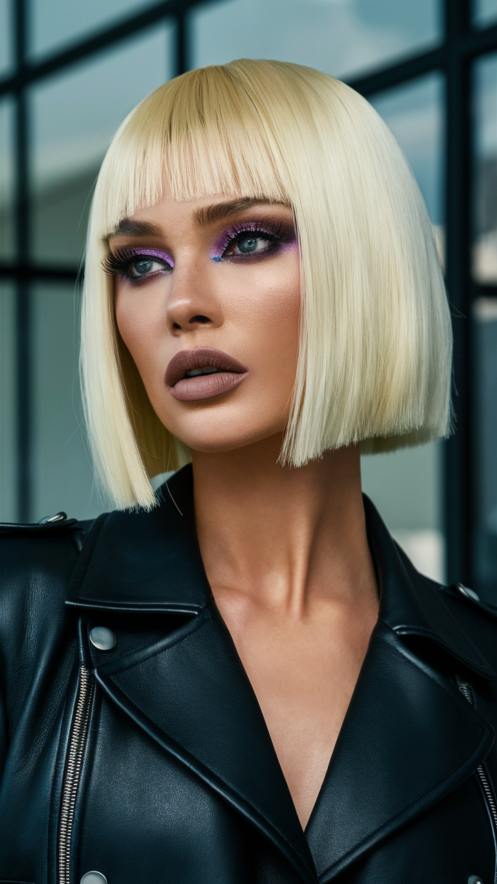 #23 Classic Platinum Blunt Bob with Straight Bangs