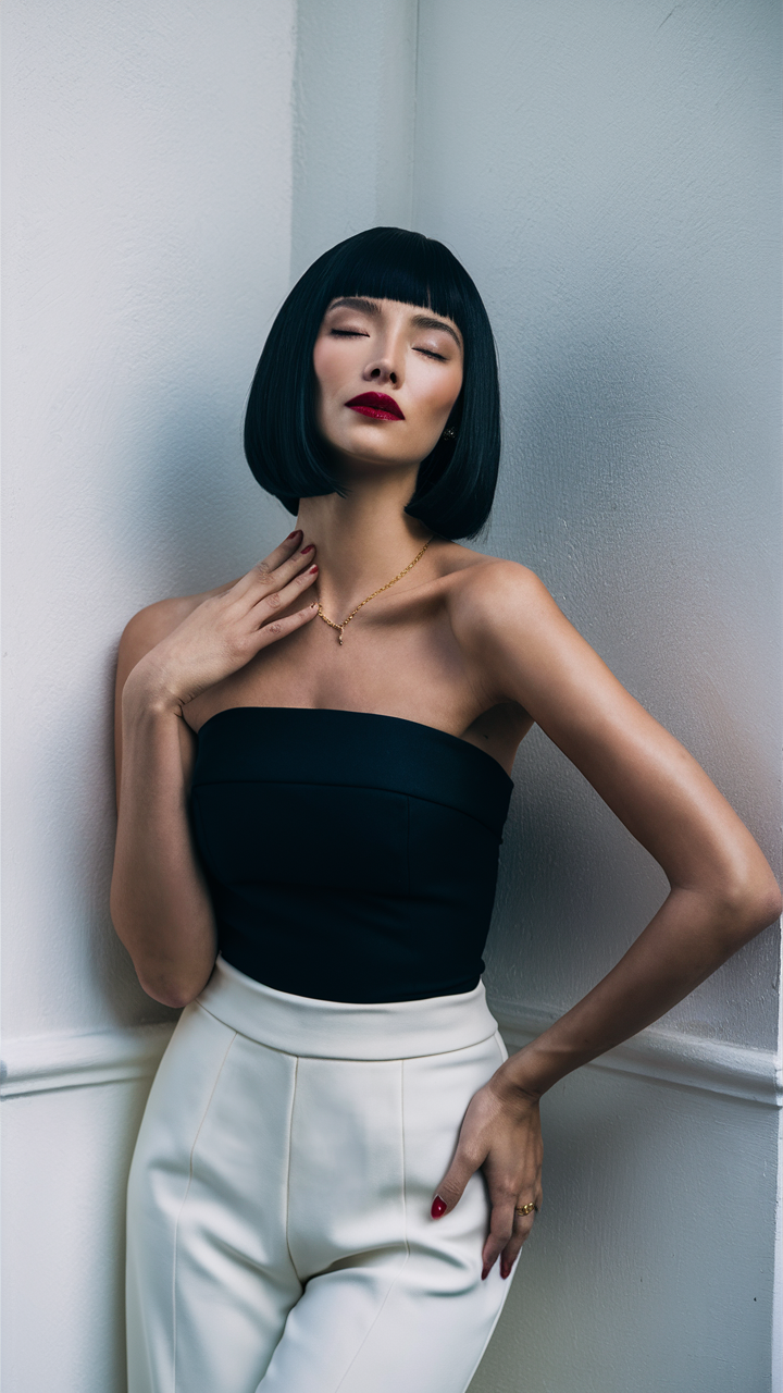 #18 Jet Black Blunt Bob with Sharp Micro Bangs