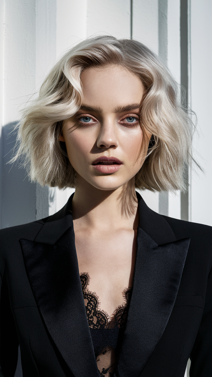 #13 Textured Ash Blonde Bob with Voluminous Waves