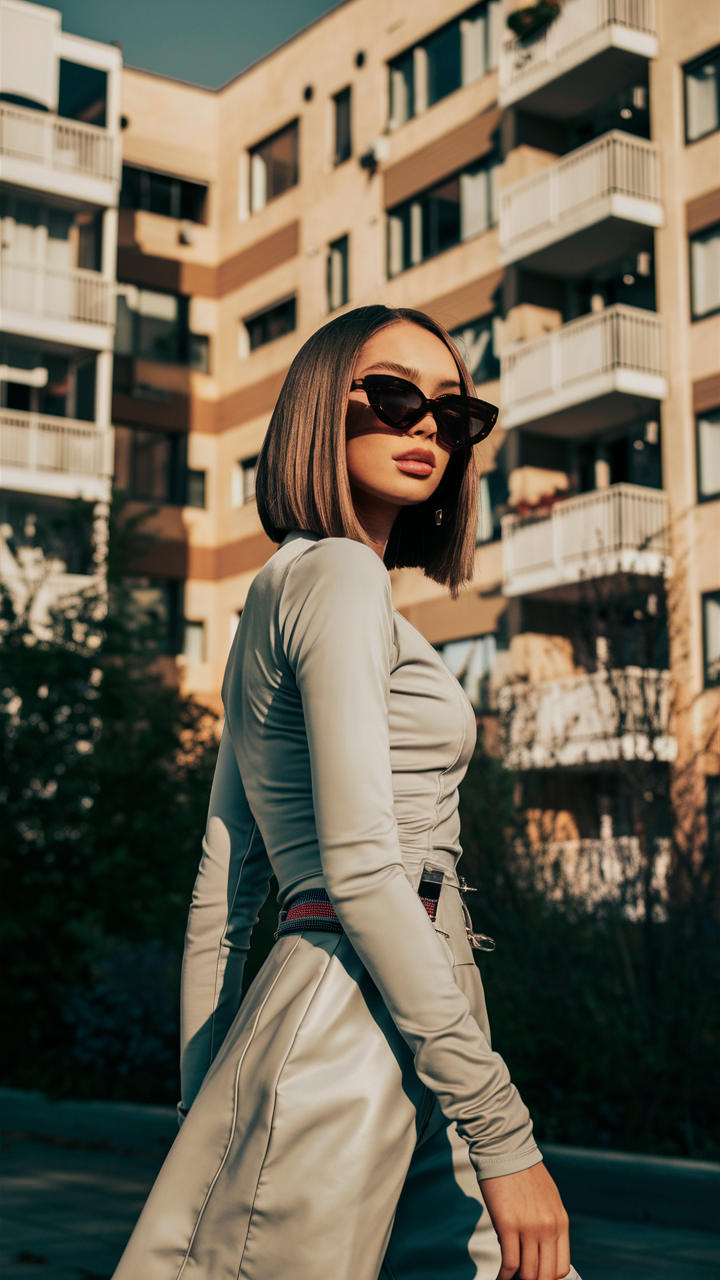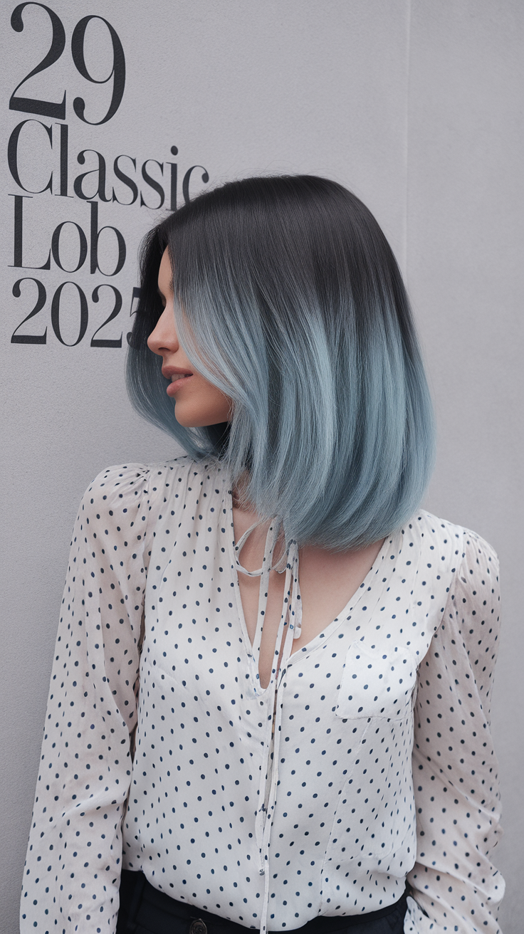 This polished lob features a smooth, straight cut in a rich brown tone with a sharp center part. The even length around the shoulders adds sophistication, making it a refined choice for the Classic Lob 2025 trend. Ideal for a minimalist look, this style emphasizes clean lines and natural shine.