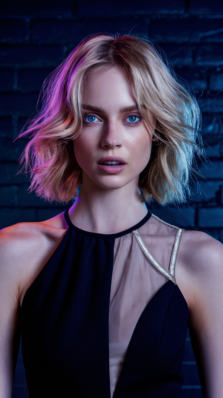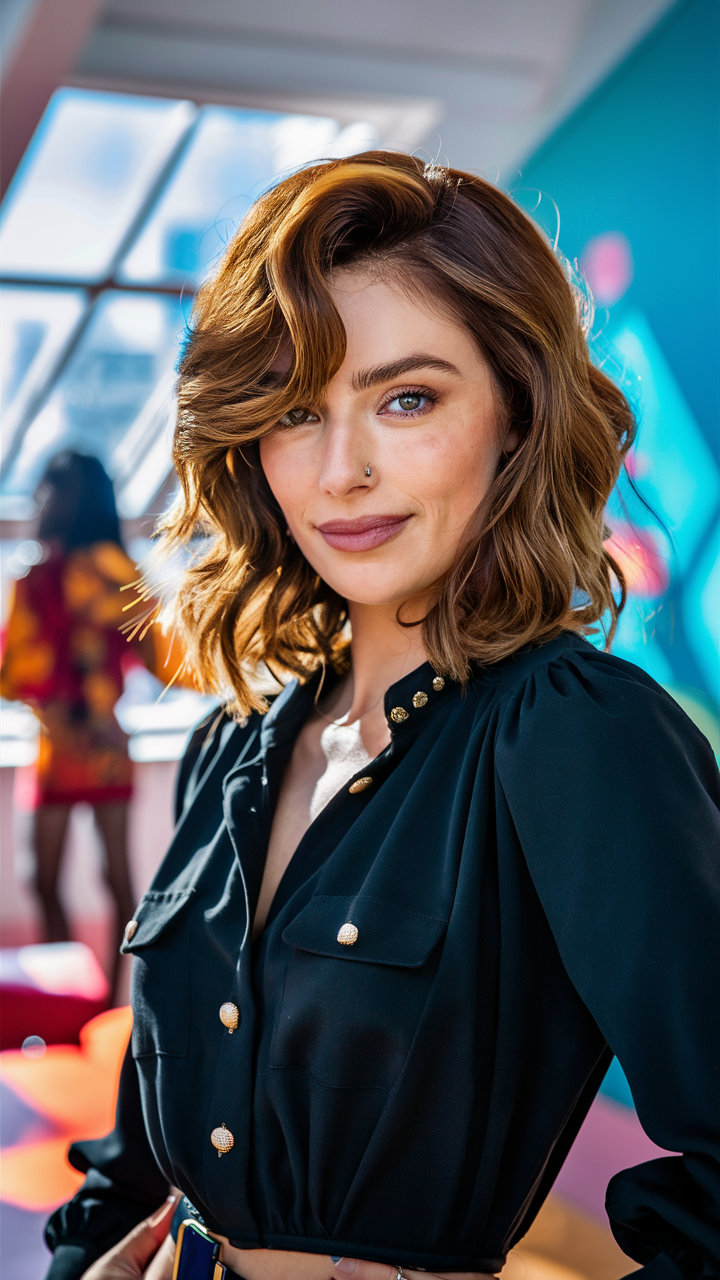 This style captures a choppy lob with soft waves and a messy texture for an effortless, undone vibe. The blonde tones enhance the look’s light, airy feel, ideal for a relaxed, carefree style. It’s a versatile cut that brings out the hair’s natural volume and movement.