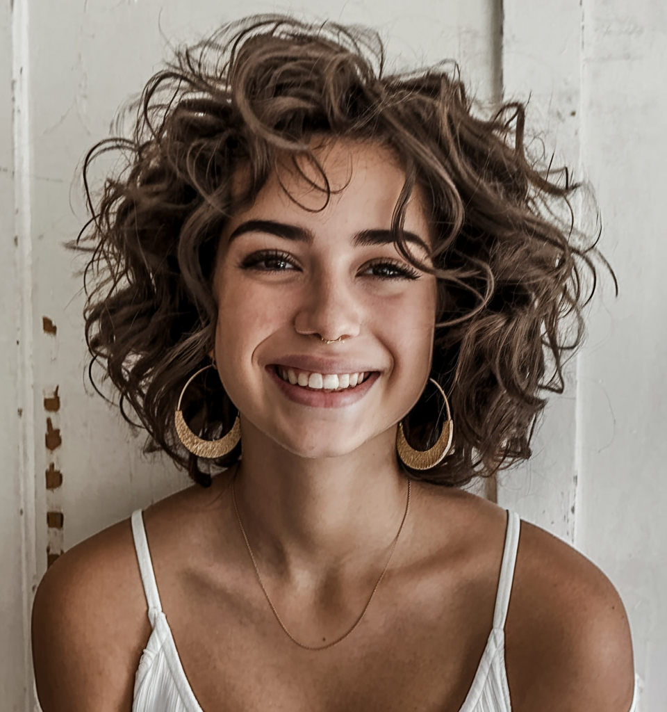 This carefree and curly bob offers a quick easy solution for those busy days when you want to look cute but need a hairstyle that’s also athletic and suitable for the gym or sports activities. Perfect for women with naturally curly or 4c hair types, the playful volume is both stylish and functional. The textured curls add a fun, youthful touch that works well for an office day or a trendy outing. It’s an easy choice for women who want something that’s pretty and quick to style for a variety of occasions.