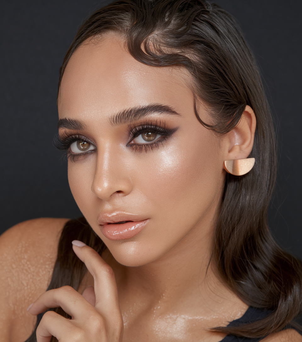 This sleek and sultry look is perfect for women seeking an elegant and quick hairstyle for any formal or athletic occasion. The slicked-back style makes it ideal for wedding guests, office events, or even a gym-ready look that remains trendy and polished. The combination of bold brows and shimmering makeup complements the quick easy style, making it an excellent choice for those who want to look effortlessly chic and fancy without the hassle.