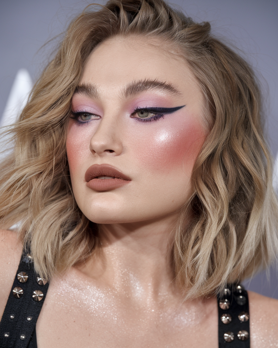 This trendy and easy wavy bob is ideal for fall hairstyles for short hair 2024. The tousled waves paired with bold makeup create a cute and elegant look that works for both prom and formal events. The texture gives it a carefree, yet polished vibe that’s suitable for women looking for a style that’s both simple and fancy. It’s a versatile hairstyle that can be dressed up or down depending on the occasion.