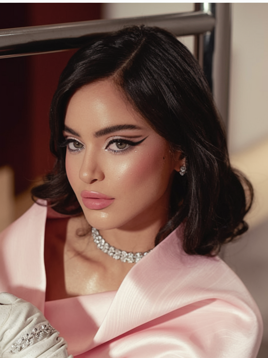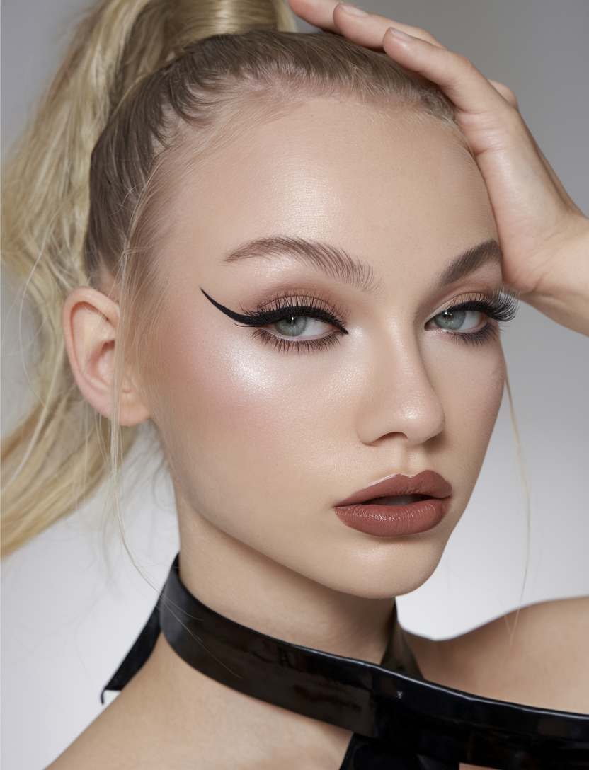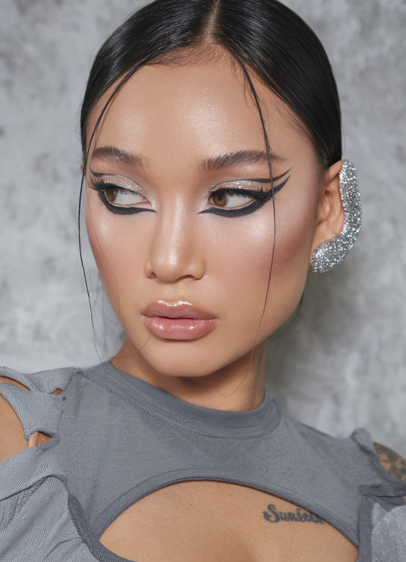 This slick, futuristic look is a bold choice for fall events. The precise, sleek middle part paired with dramatic winged eyeliner makes this style ideal for women attending formal occasions or wedding guest events. The sleekness of this look adds an air of sophistication, making it perfect for those who want a trendy, fancy style that’s also quick and simple to achieve.
