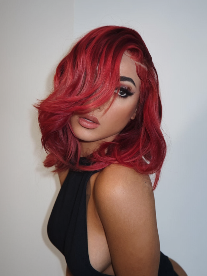 Bright Red Bob with Volume