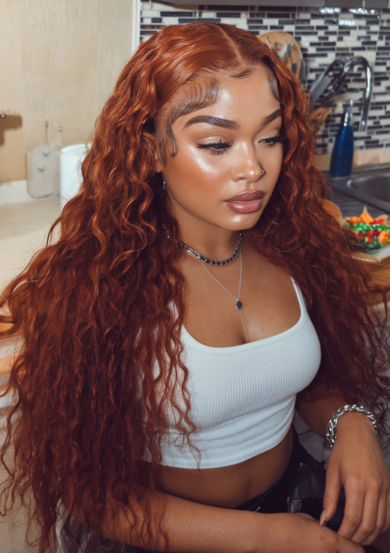 Copper Curly Waves with Baby Hairs