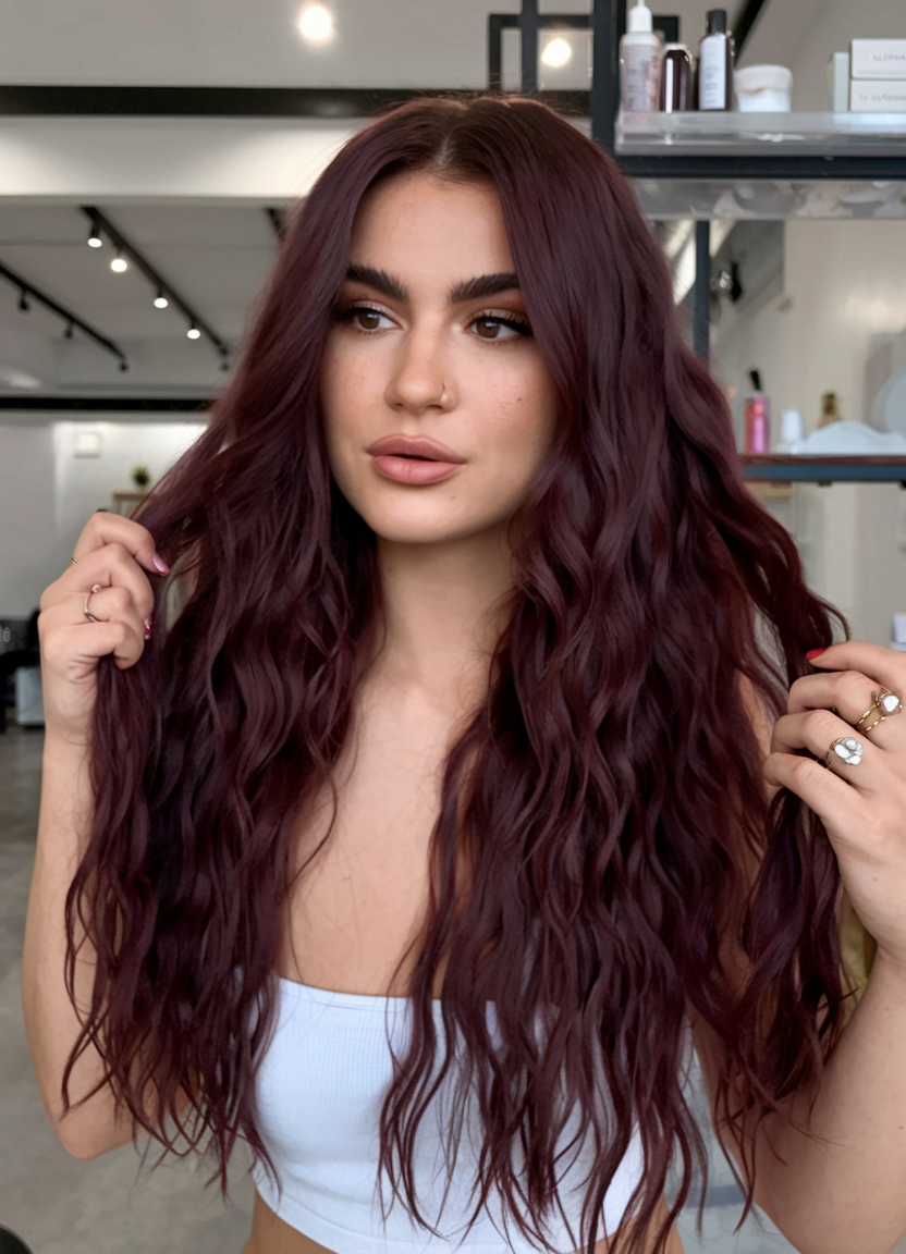 This dark burgundy long hairstyle is a stunning example of how rich, deep tones can add drama and elegance to any look. The soft, cascading waves give off a cute and effortless vibe, while the bold color screams sophistication. It’s an ideal choice for those who want to embrace the rise of darker tones in fall 2024 and still keep a natural aesthetic. Suitable for both formal and casual settings, this look is timeless and easy to style.