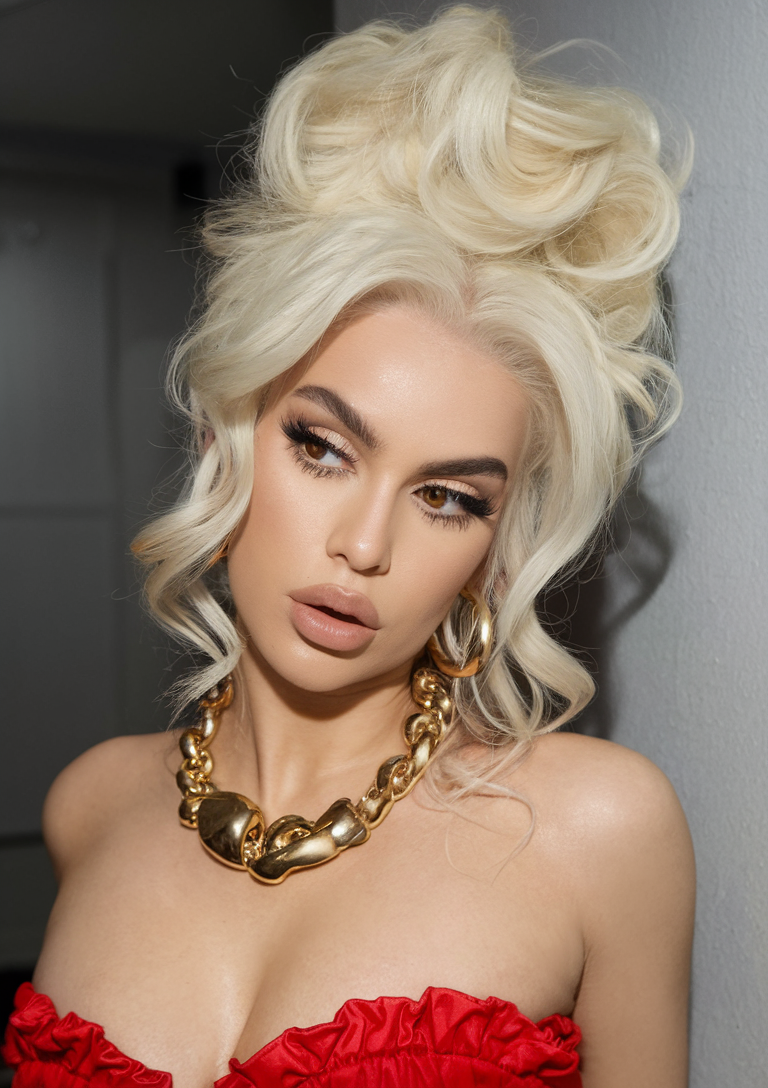 For those looking for a striking trendy updo, this voluminous platinum hairstyle is perfect. The textured freehand updo combines loose curls with a structured yet effortlessly styled bob effect. It is a bold, current look that works well for formal events, making it a fantastic choice for women who want to stand out. The platinum color paired with chunky accessories gives off a high-fashion vibe that is easy to maintain with cornrow rasta-inspired styling.