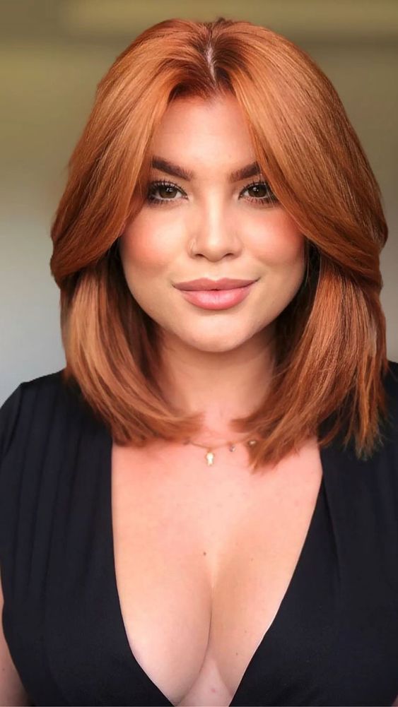 Vibrant and full of life, this copper bob is a striking statement of 2024 medium hair trends. It’s an ideal summer haircut for those who want a simple, yet aesthetic change. The warm copper tone is perfect for women 2024 who want to add a pop of color to their look, and the bob length is a classic that offers both sophistication and ease of maintenance.