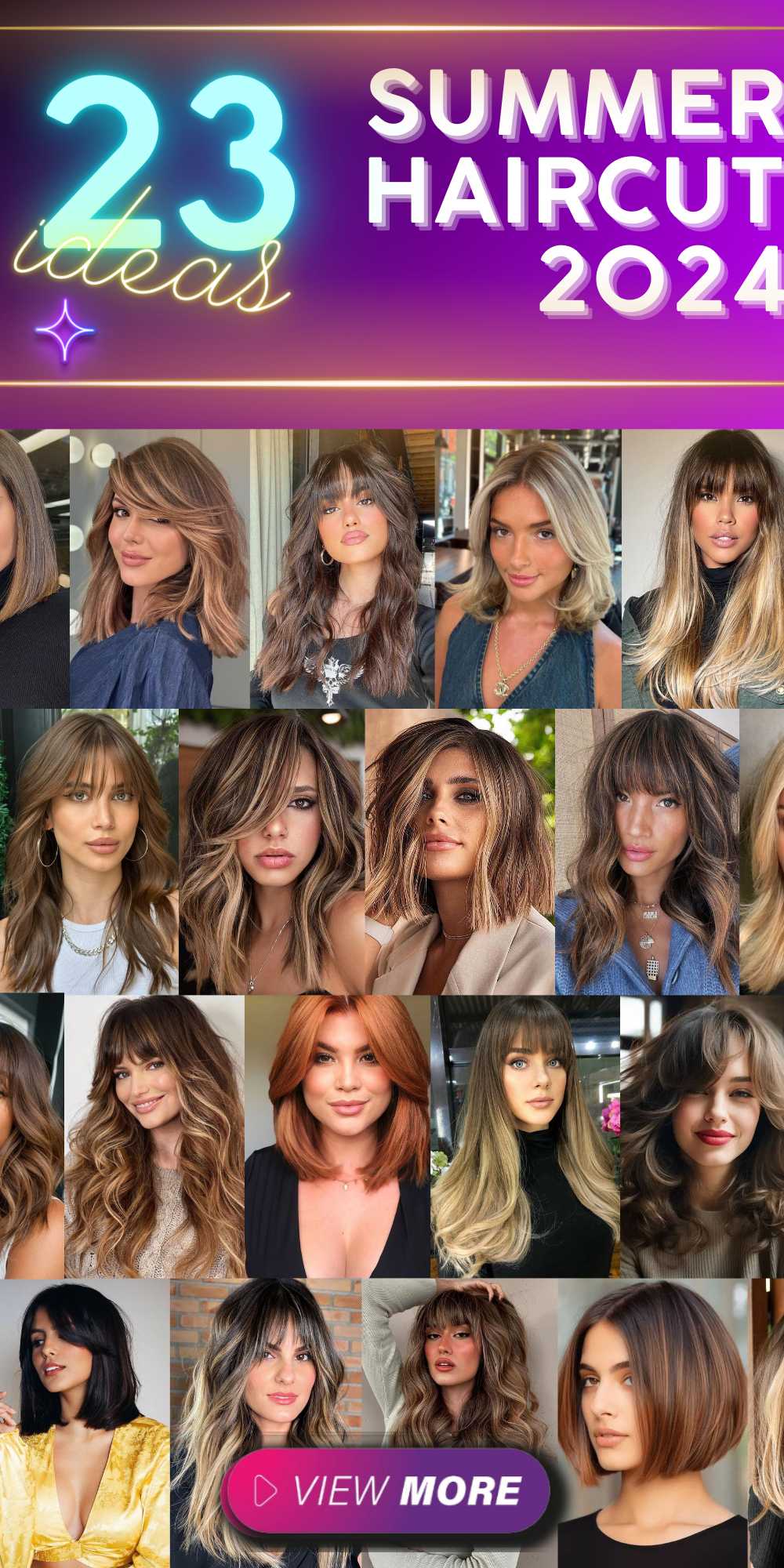 For those who love the romantic allure of luscious layers, this summer haircut 2024 with a fringe is a perfect pick. It’s a trendy look that resonates with women medium to long hair, offering a cute and simple way to frame the face and add softness to the overall style. The fringe adds a youthful touch that’s both fun and aesthetic.