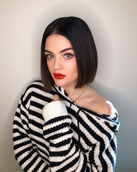 The quintessential bob makes a striking statement this spring, perfect for the woman with a round face seeking a harmonious balance between edgy and classic. This sleek bob features straight hair with a precision cut just below the jawline, accentuating the cheekbones and framing the face beautifully. The dark, rich color adds a sense of mystery and depth, ideal for those with thick hair looking for a trendy yet manageable style. Pair this cut with vibrant lipstick and a monochromatic outfit for a look that’s effortlessly chic.