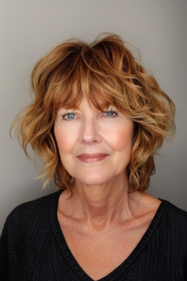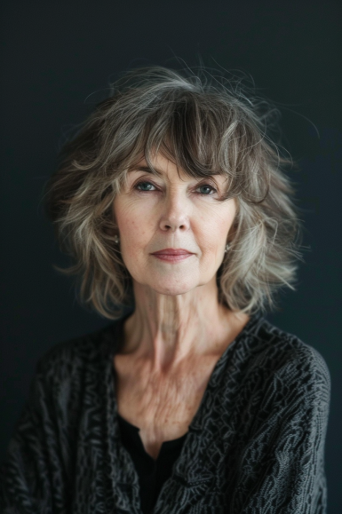 I’m obsessed with how timeless and artsy this haircut feels! It has that “I’m confident and I know what I want” energy that’s perfect for women over 50 who want a fresh yet sophisticated style. The bangs add a playful vibe, while the textured layers make it low-maintenance but high-impact. Honestly, it’s like the best of both worlds—classic yet modern, and totally eye-catching!