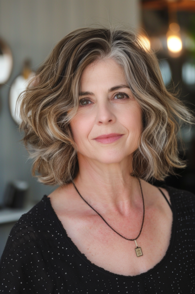 I adore how sophisticated yet approachable this hairstyle feels. The mix of natural tones celebrates beauty and confidence while making it low-maintenance. It’s one of those styles that works everywhere—from running errands to a night out with friends. Plus, those waves have just the right amount of bounce to make you feel like a total goddess without trying too hard. Talk about aging gracefully and fabulously!