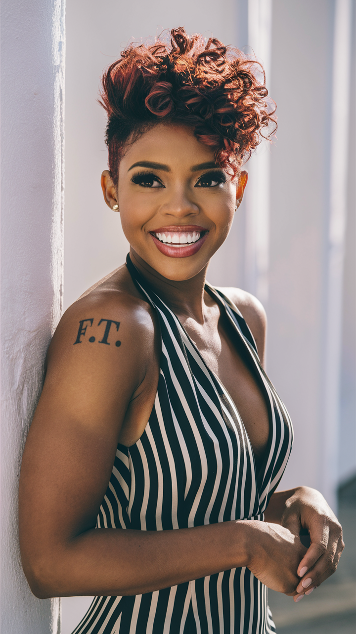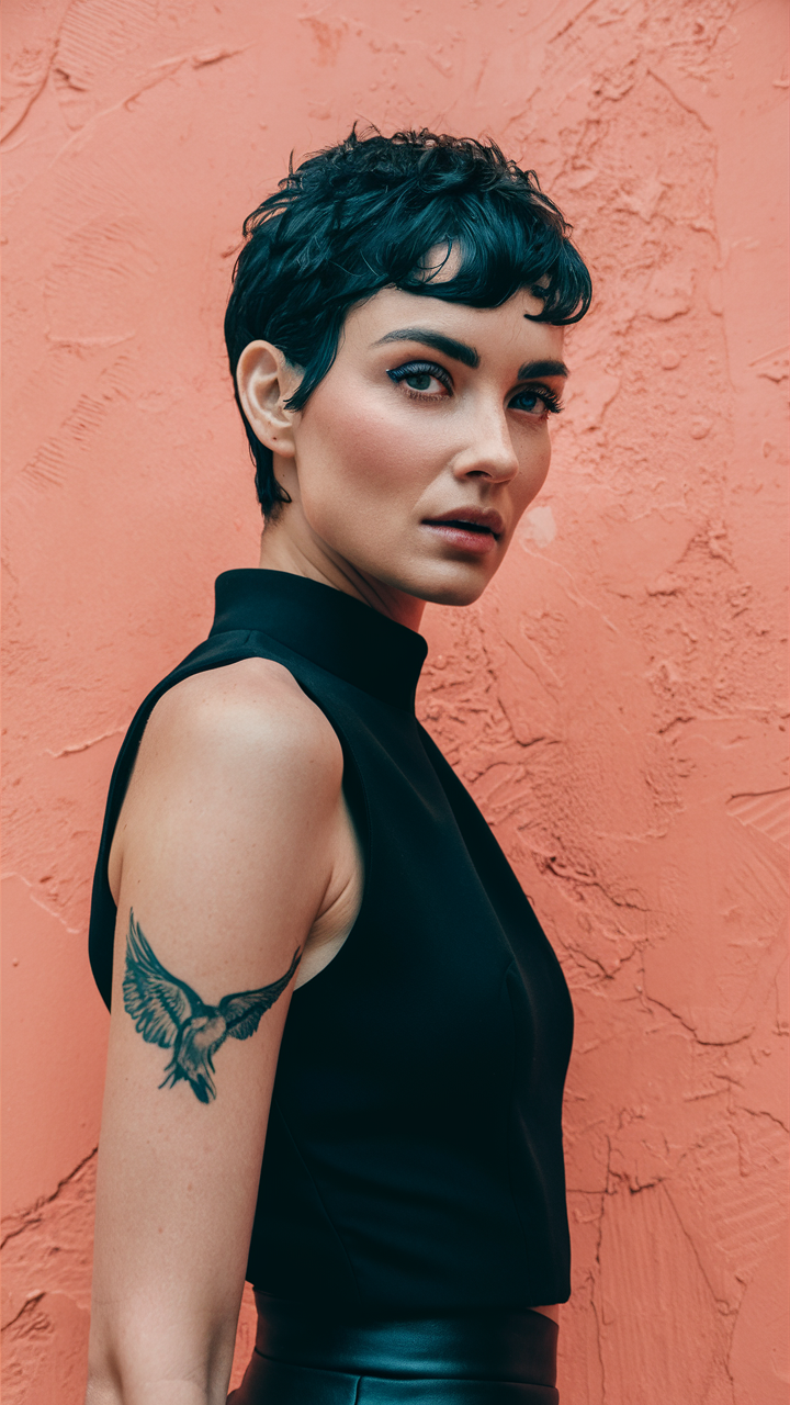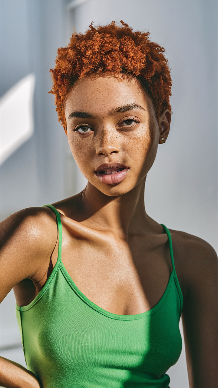 A rich copper pixie cut with textured layers frames the face effortlessly. Perfect for women thick hair, this style suits summer women’s hairstyles and fall women’s hair ideas, offering warmth and charm.