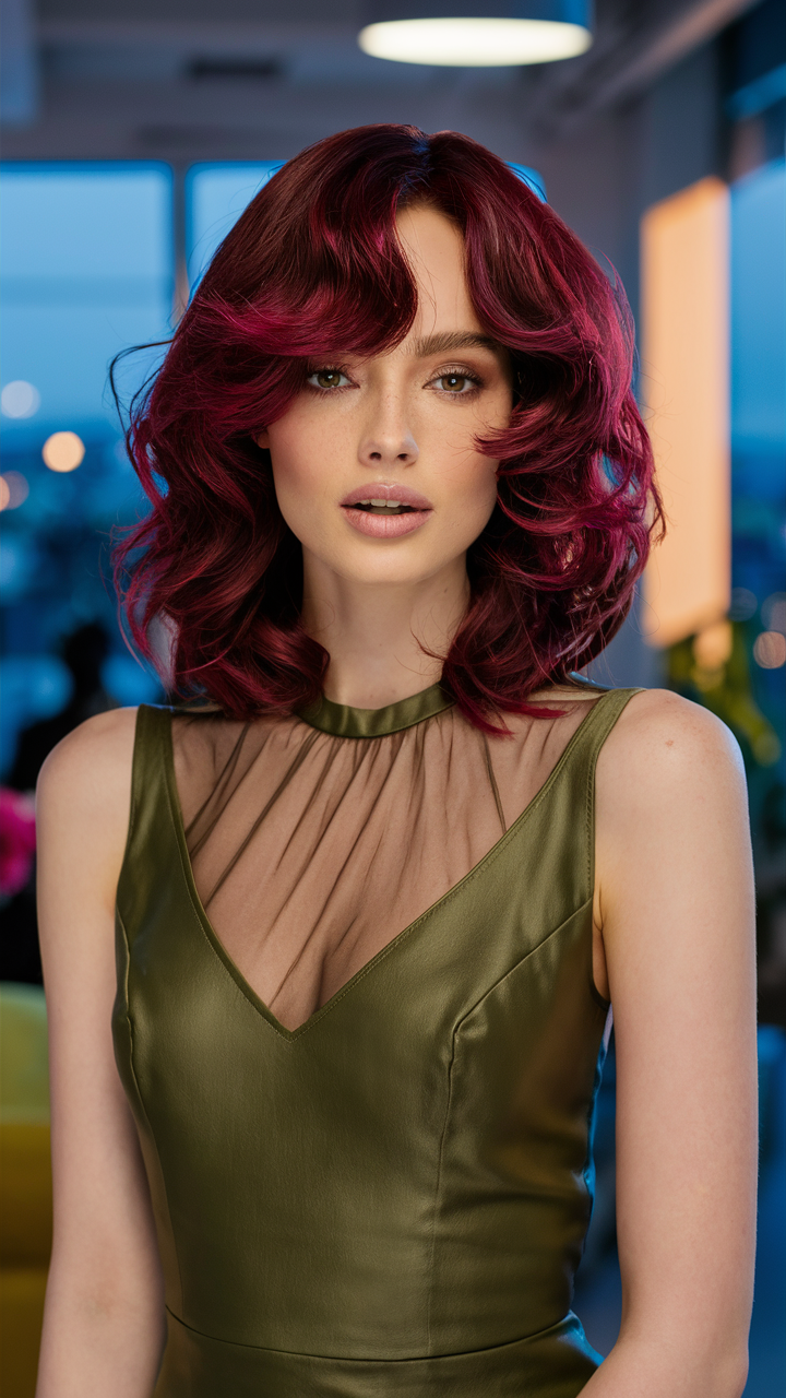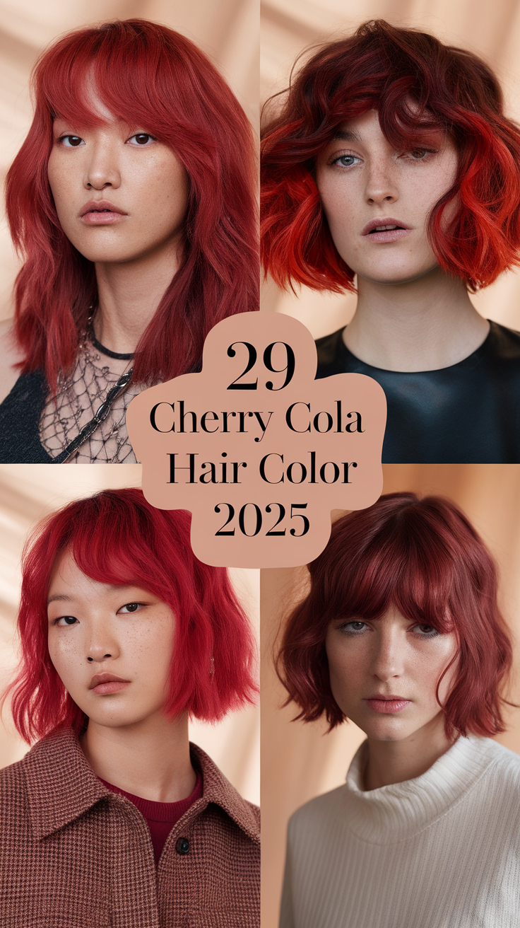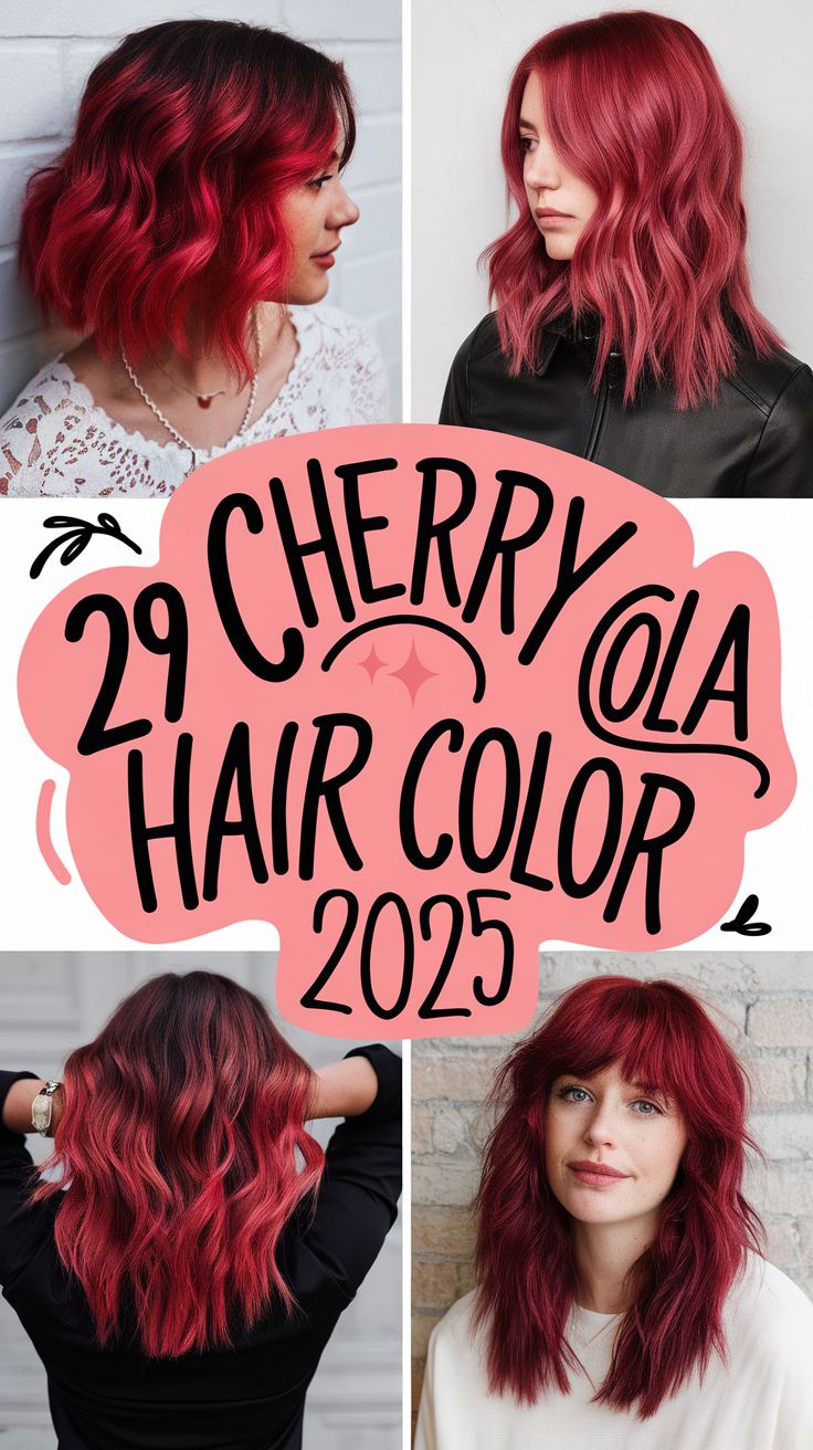 The Cherry Cola hair color trend is taking 2025 by storm, blending the richness of dark reds and browns with modern highlights and textures. This versatile hue is perfect for all skin tones and can be styled in numerous ways to match any season’s vibe. Below are detailed descriptions of three stunning hairstyles featuring this trending color.