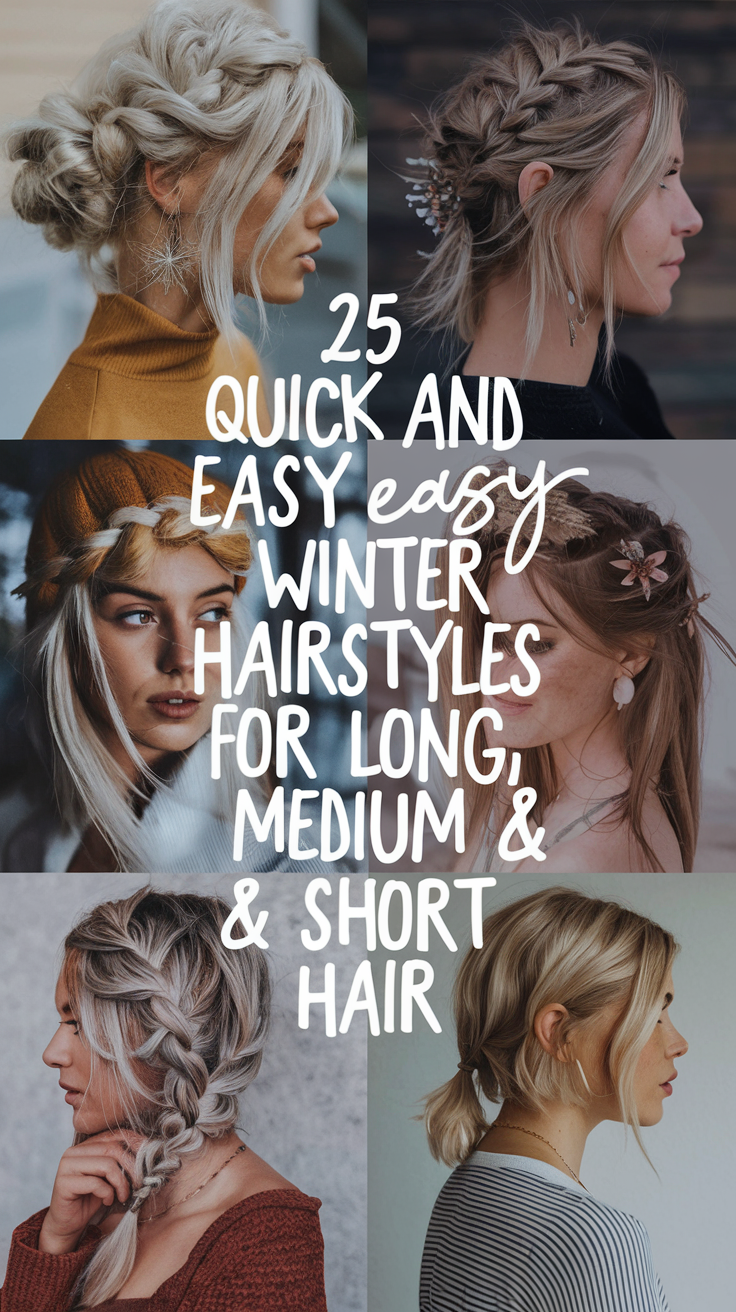 Winter brings its own set of hair challenges, but that doesn’t mean you can’t stay stylish and practical. Whether you’re getting ready for work, school, or simply want a cute hairstyle to rock at home, I’ve curated a list of 25 quick and easy winter hairstyles. Each one is suited for different hair lengths—long, medium, and short. These hairstyles are perfect for those cold mornings when you’re in a hurry, yet want to look put together!