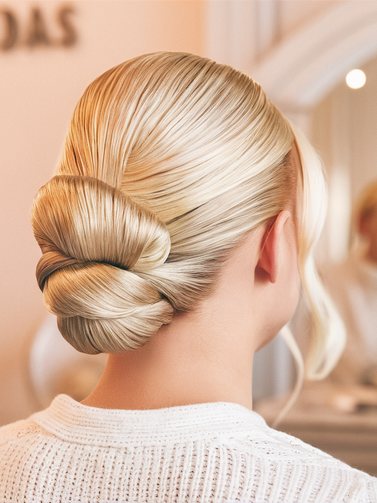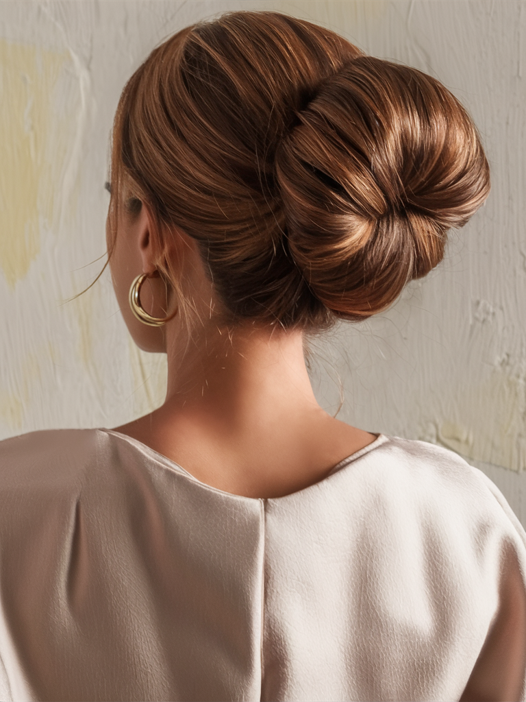 A low chignon bun is a timeless and elegant choice for work or formal occasions. This updo can be easily recreated with medium length simple hair tutorials, especially if you’re aiming for a sophisticated yet quick style. The twisted bun is ideal for anyone with medium hair looking for something sleek and chic for winter.