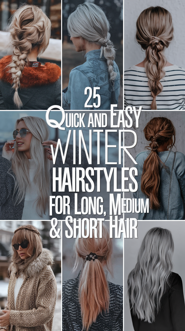 High space buns are a fun and flirty hairstyle perfect for a casual day out or a school look. This playful style is great for those with short hair or medium length who want something quick, cute, and easy. The loose strands framing the face add softness, making this an effortlessly stylish winter hairstyle.
