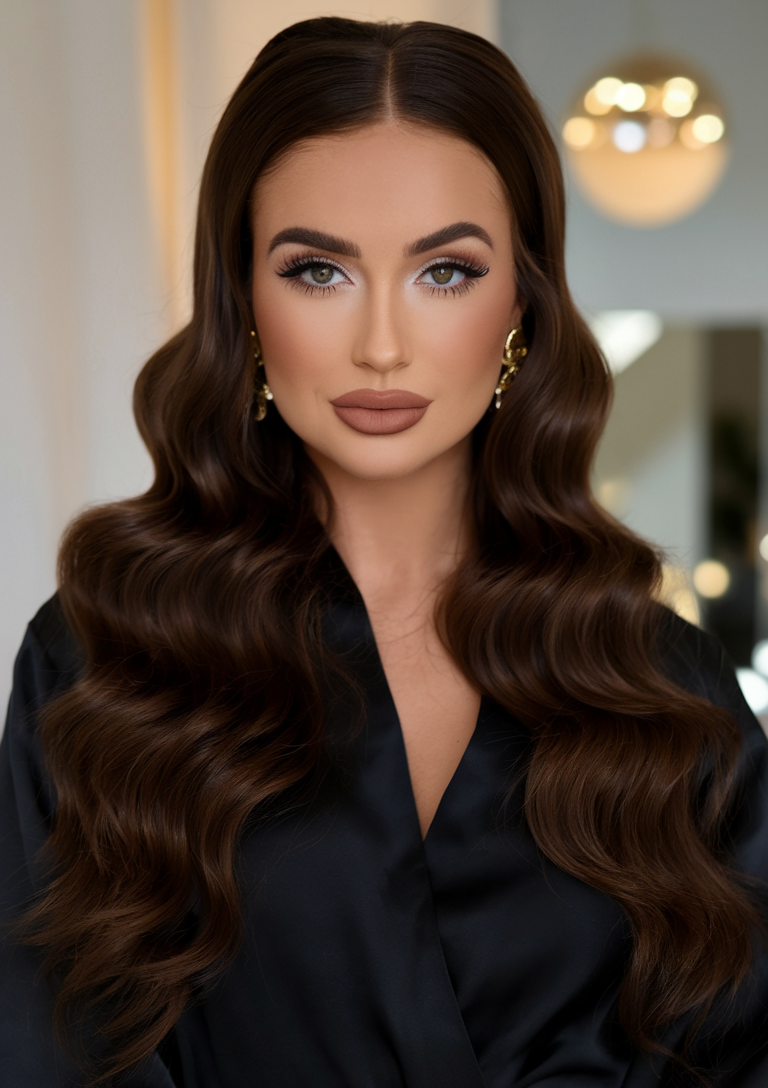 With sleek, deep dark chocolate waves, this style exudes sophistication. The richness of the color, combined with the soft, flowing waves, creates an elegant and timeless winter look. Ideal for brunettes who want a polished, glossy finish with a refined, luxurious feel.
