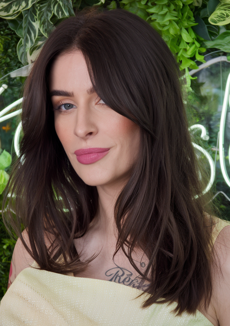 Rich chocolate brown tones are enhanced by voluminous, lush layers in this style. The softness of the layers adds dimension to the deep brunette color, giving it a full-bodied appearance. This look is ideal for brunettes who want to maintain a darker shade with added volume and texture for winter.