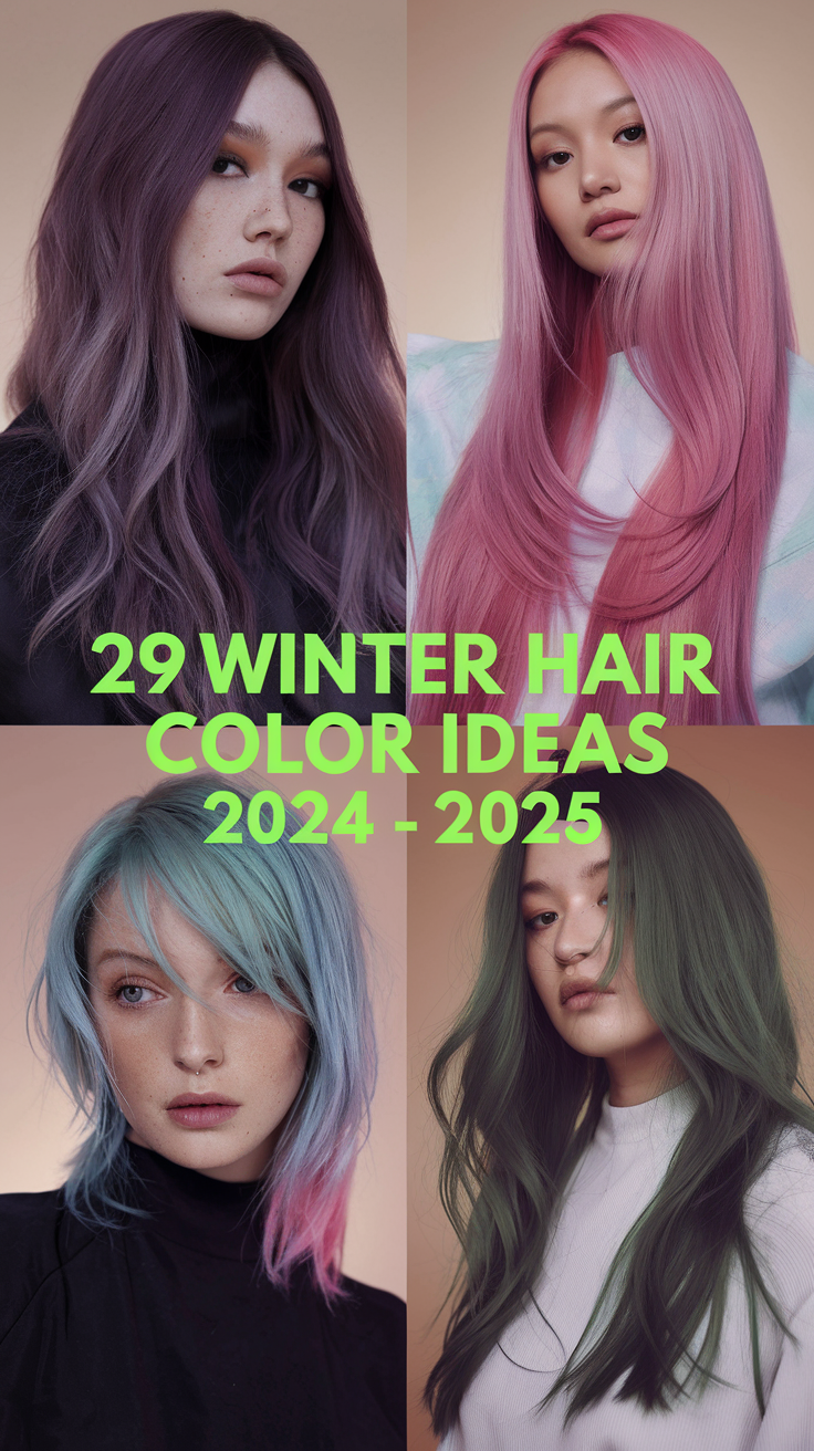 This unique blend of pink, orange, and yellow hues creates a soft sunset effect, perfect for those who love to experiment with color. The pastel shades are delicately blended for a smooth transition, adding dimension to wavy or straight hair. This playful yet subtle look is a fresh take on winter hair color trends.