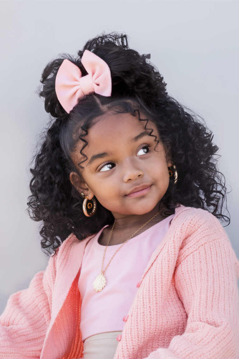 For a playful and adorable hairstyle, this natural half-updo is finished with a statement bow. The defined curls are soft and voluminous, giving off an effortless look, while the bow adds a touch of sweetness. This is an ideal option for younger girls or anyone looking for a fun, cute style to wear during the holiday season.
