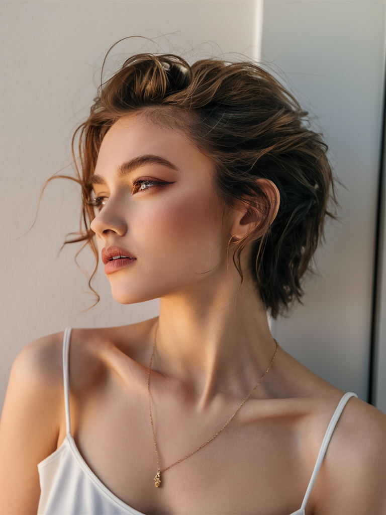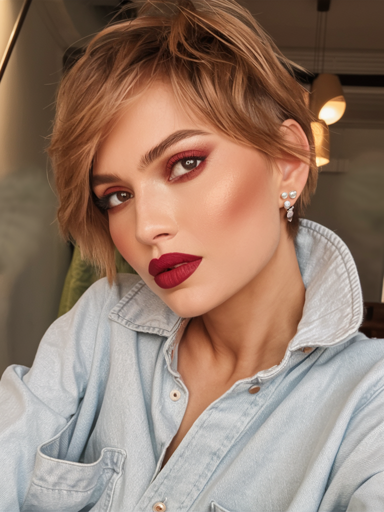 This short pixie cut is all about texture and attitude. The choppy layers create volume at the crown, while the slightly longer pieces at the front give it a modern touch. Ideal for women looking for a bold yet effortless style, this pixie is a top choice in 2024 short hair trends.