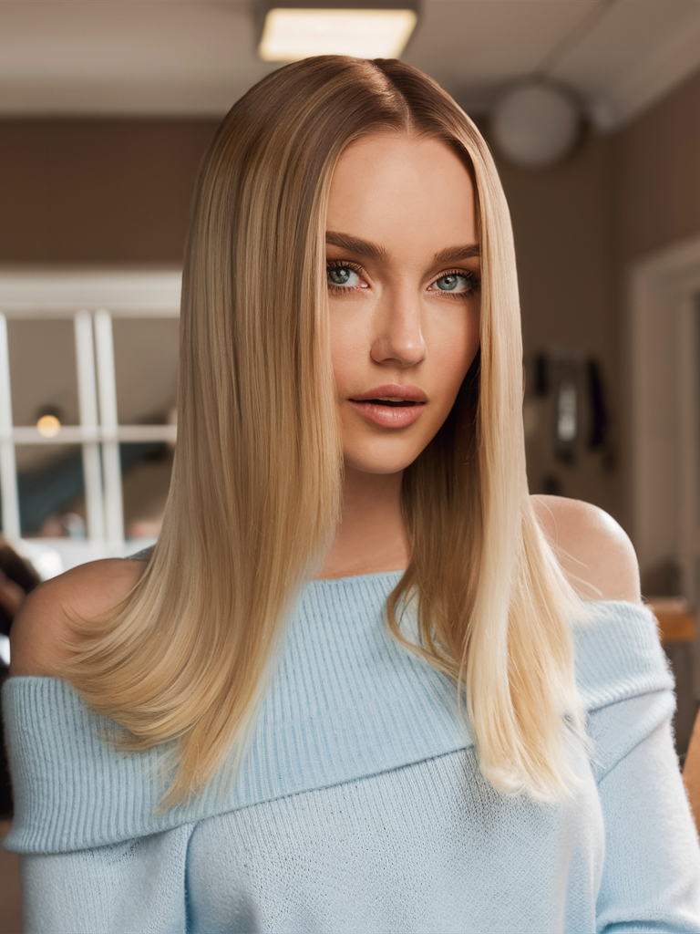 For a sleek and modern look, this long, blonde balayage is a great option. The perfectly smooth finish is paired with soft layers at the ends, creating a streamlined, chic effect. This style works well for long hair, adding depth with lighter shades of blonde at the ends for a polished and trendy finish.