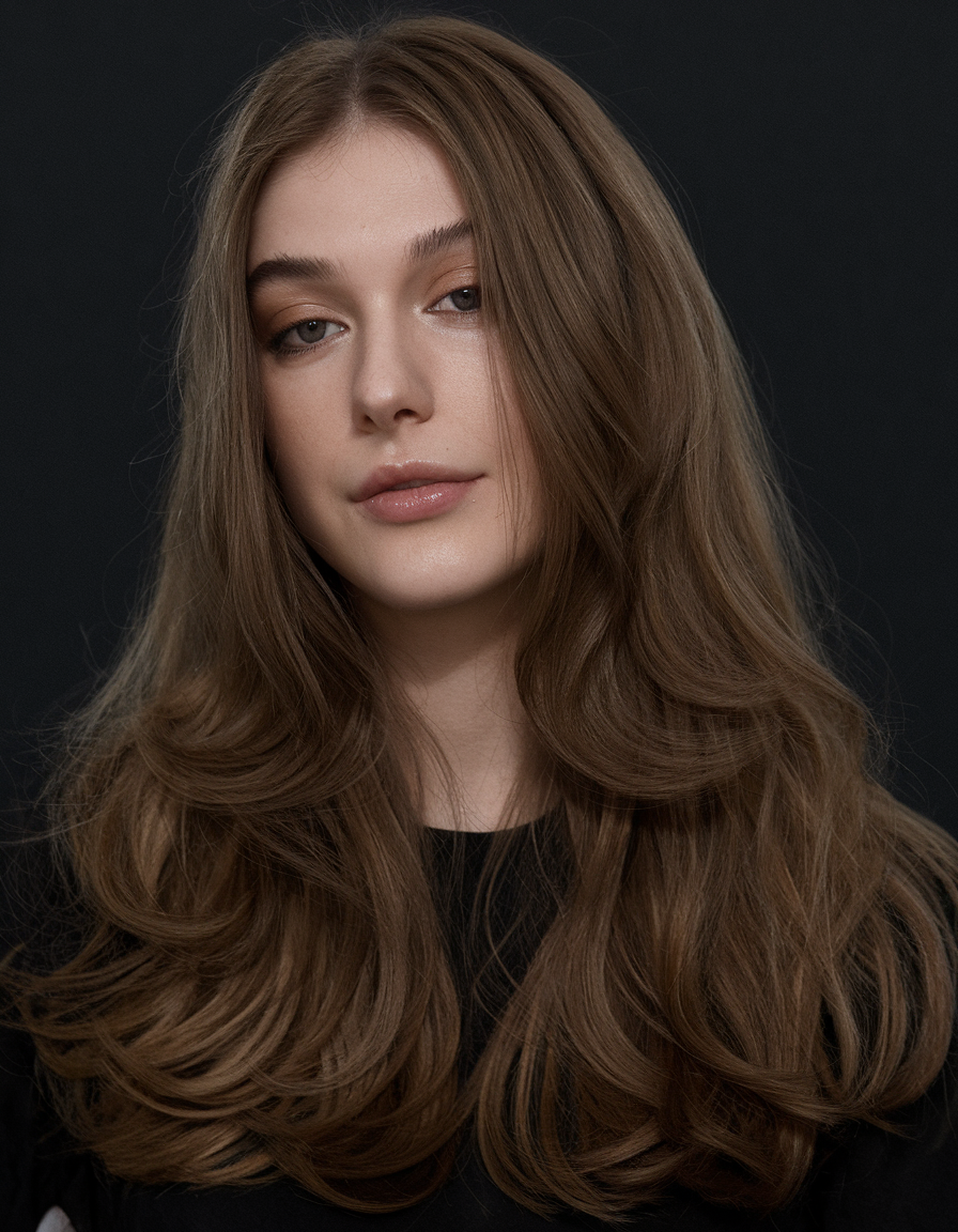 This soft brunette layered look is all about subtle volume and elegant flow. The gentle layers add texture and dimension to the hair, making it a great choice for women with long hair looking for a trendy yet understated style. Perfect for 2024 hair trends, this hairstyle is timeless and versatile.