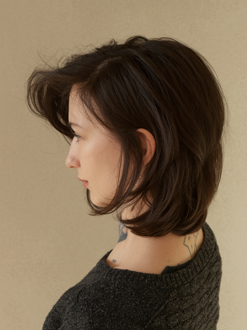 This medium-length bob has a subtle wispy texture, giving the hair a soft, effortless feel. The slight volume at the crown makes it ideal for women with thin hair, as it adds dimension and lift. It’s an ideal 2024 hair trend look for those who prefer a natural, easy-going style with a bit of structure.