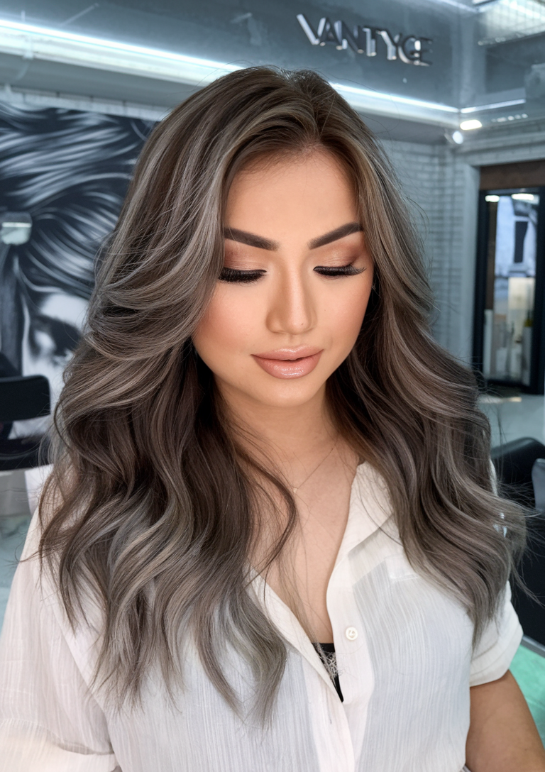 This ash brown color combined with loose waves creates a look that is both modern and relaxed. The natural movement of the waves gives the hair texture and dimension, while the cool brown tone is perfect for those looking for a fresh, edgy vibe. This style suits long hair and is a fashionable choice for the cooler seasons.