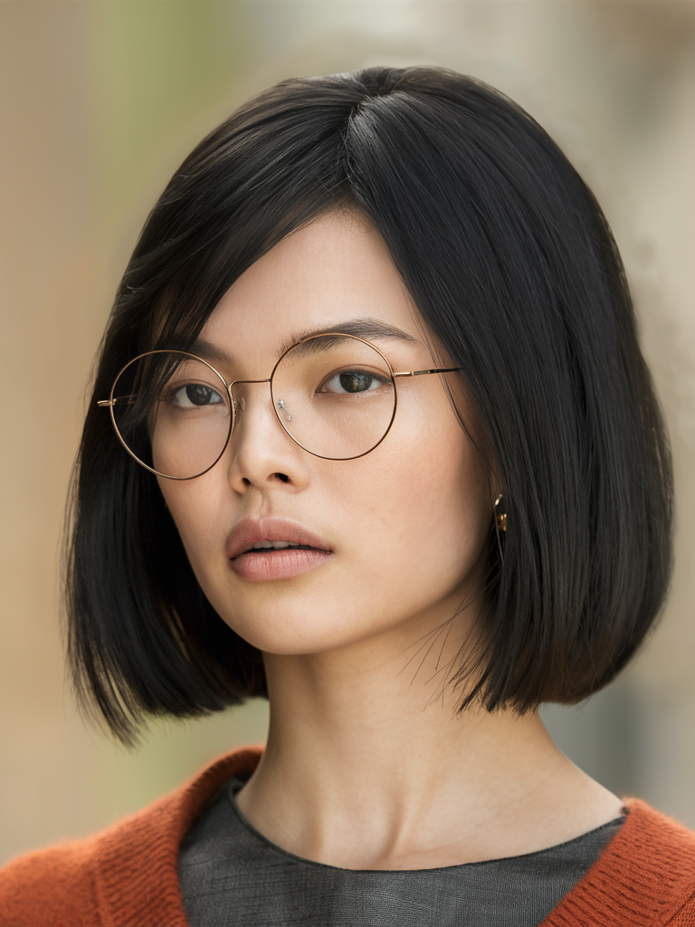 This classic bob is a sleek and simple style, perfect for women looking for a low-maintenance yet chic option. The straight cut enhances the structure of the hair, and paired with glasses, it gives off a smart and polished vibe. This style is perfect for short hair lovers looking to maintain a neat and modern appearance for 2024.
