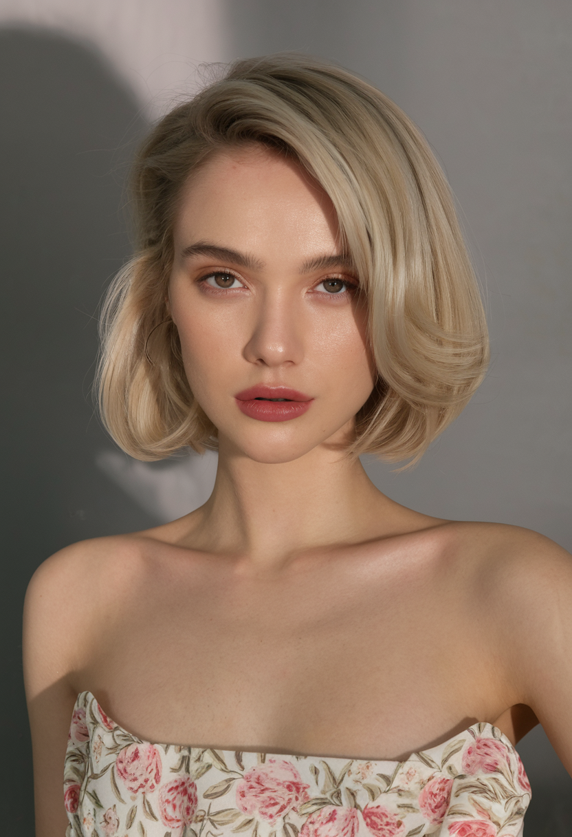 This short blonde bob with soft curls is all about elegance and sophistication. The soft curls add a playful bounce to the cut, making it a perfect option for those who want a classic yet modern style. This look is ideal for women with short hair who want to add a bit of volume and texture to their style in 2024.