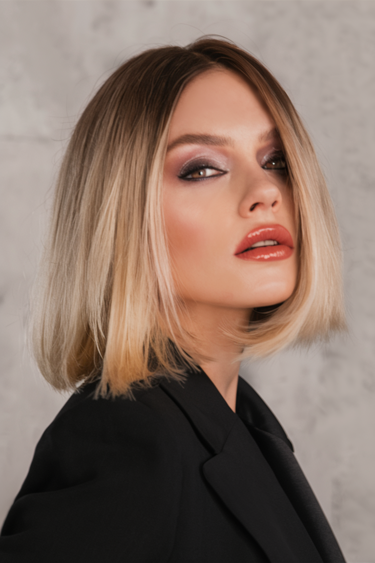 This blunt ombre bob offers a modern twist on the classic bob with a smooth transition from darker roots to lighter ends. The sharp cut keeps the style fresh and edgy, while the soft ombre adds dimension. This look is ideal for those wanting a bold, short hairstyle with a touch of elegance for 2024.