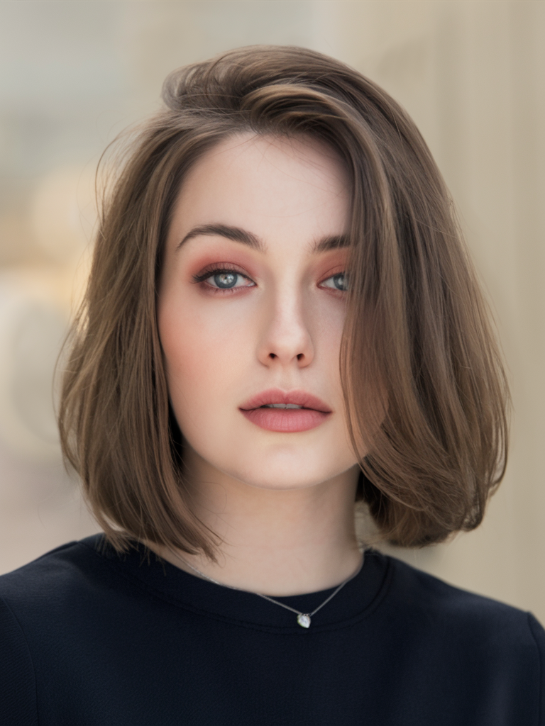 This polished bob features sleek, smooth lines and a subtle side part for a sophisticated finish. The cut is perfect for straight hair and those who prefer an easy-to-maintain, stylish look. The blunt ends provide structure, making it ideal for those looking for a chic yet simple hairstyle for 2024.