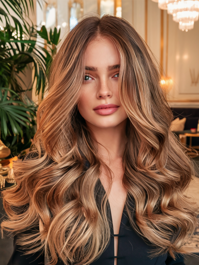 Brunette Waves with Warm Highlights