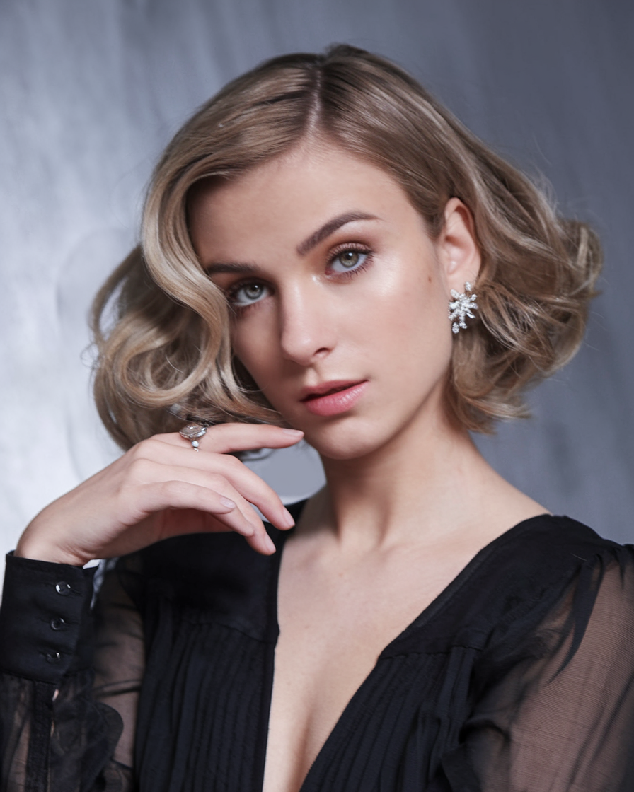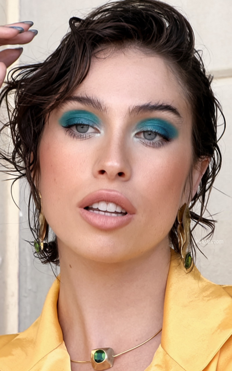 This edgy, wet-look bob is a striking fall 2024 trend, ideal for women with short, fine hair. The sleek, shoulder-length style emphasizes the bold makeup and sharp jawline, making it perfect for those wanting a daring, high-fashion look. The bob suits both dark brunette and copper tones, working well for women with round faces.