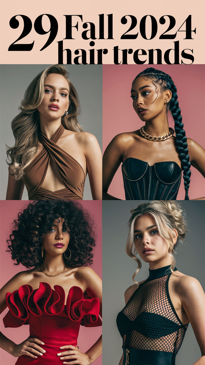 This chic blonde bun is a standout fall 2024 trend, perfect for women with medium or long hair. The sleek front pieces frame the face beautifully, making it ideal for thin hair and round faces, adding both volume and elegance.