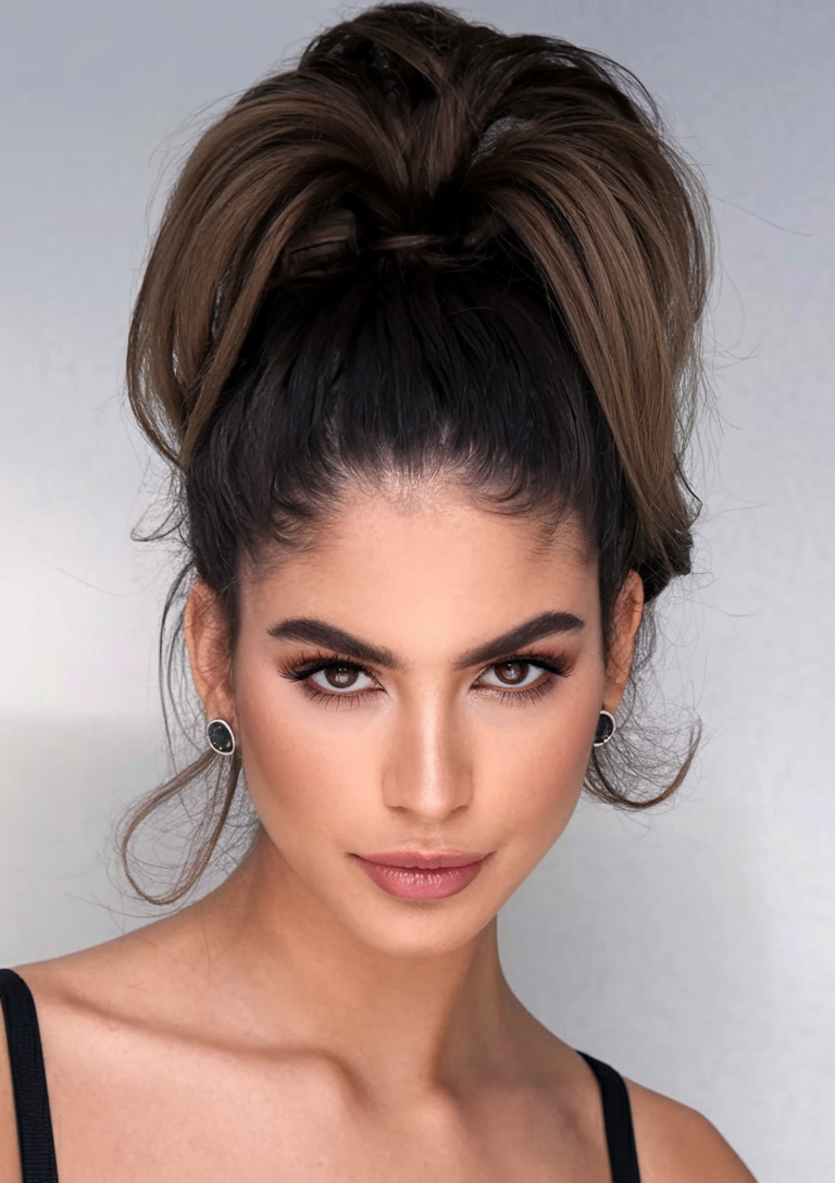 This high, voluminous brunette ponytail is a key fall 2024 hair trend, offering a bold and elegant look. Perfect for women with long, thick hair, the high ponytail adds volume and structure. It’s a versatile style for autumn, especially flattering for round faces and women, giving a lifted, youthful appearance.