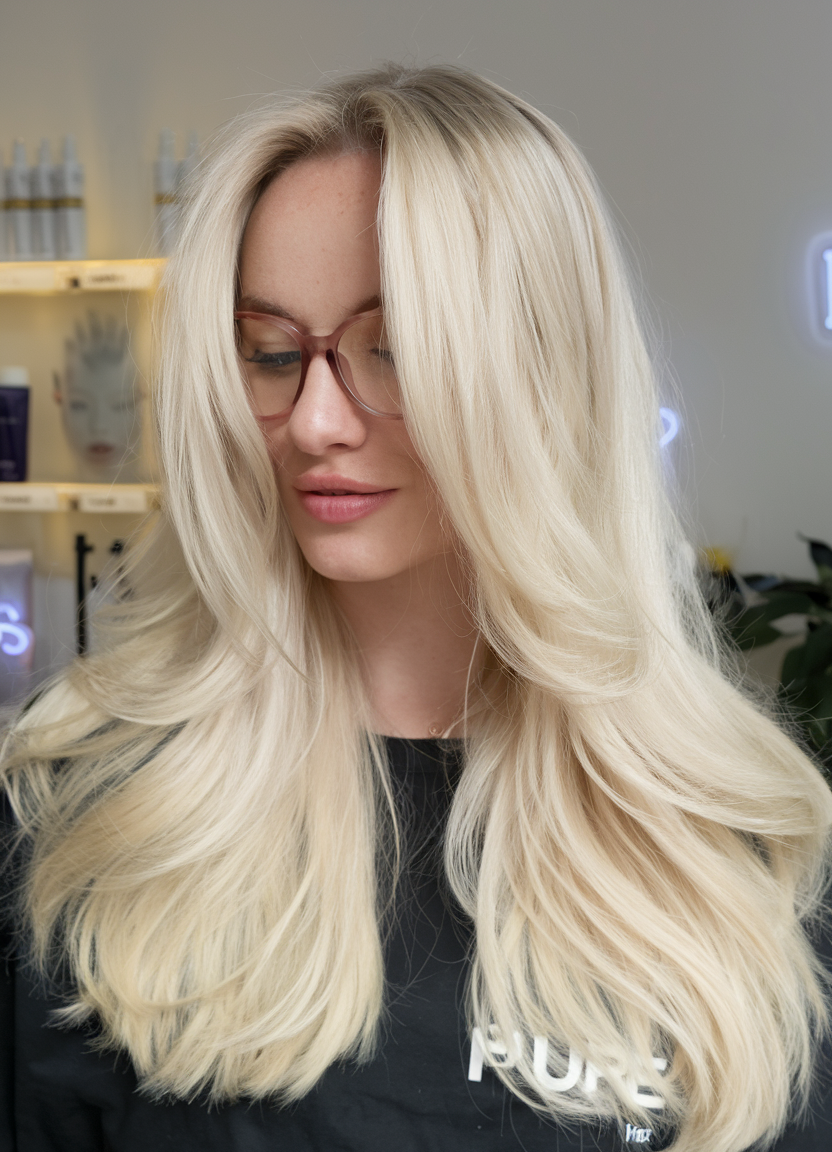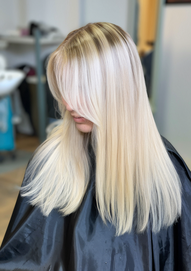 This striking platinum blonde style features long, flowing layers that give the hair a light, airy feel. It’s perfect for women who want to embrace trends for blondes while maintaining a trendy look. The subtle texture and shine make this a popular haircut for fall hair colors 2024 and a great way to update your look for the season.
