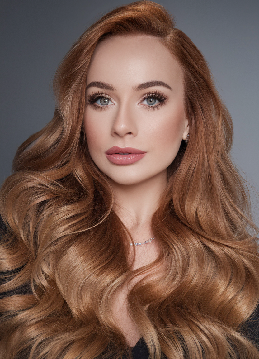 These glamorous auburn waves showcase a rich, warm color, making it a standout for fall hair colors 2024. The cascading waves give the hair a voluminous, trendy appearance that’s perfect for special occasions. This look is ideal for women seeking a luxurious, high-impact hairstyle that enhances their natural beauty.