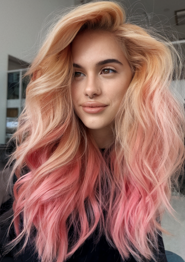 Peach and Pink Ombre Fall Hairstyle for Long Hair 2024
